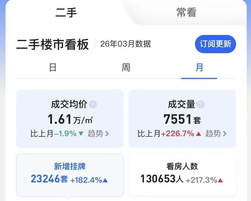 上海:截至3月30日,上海二手房3月累计网签量已突破3万套大关,创下自2021年3月以来近五年新高,市场热度持续攀升。