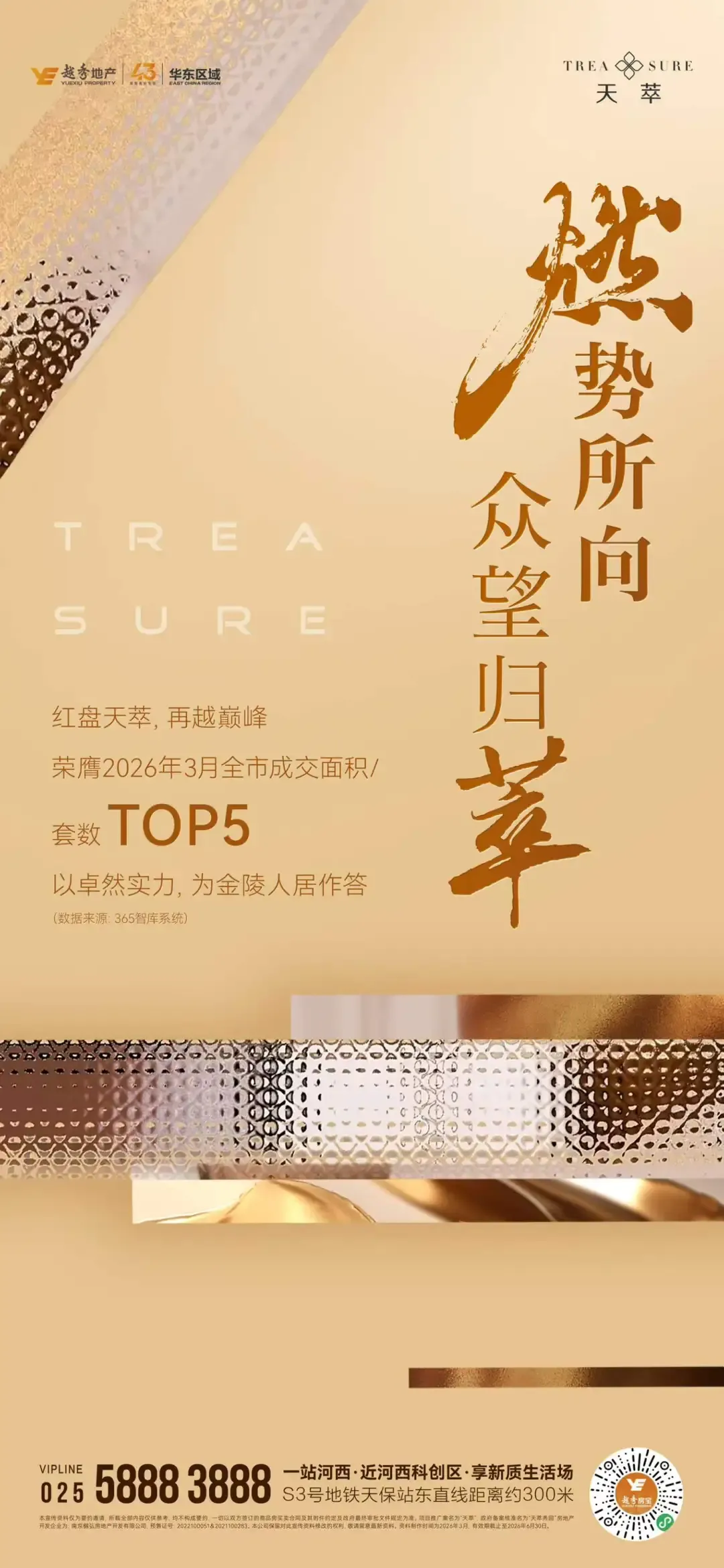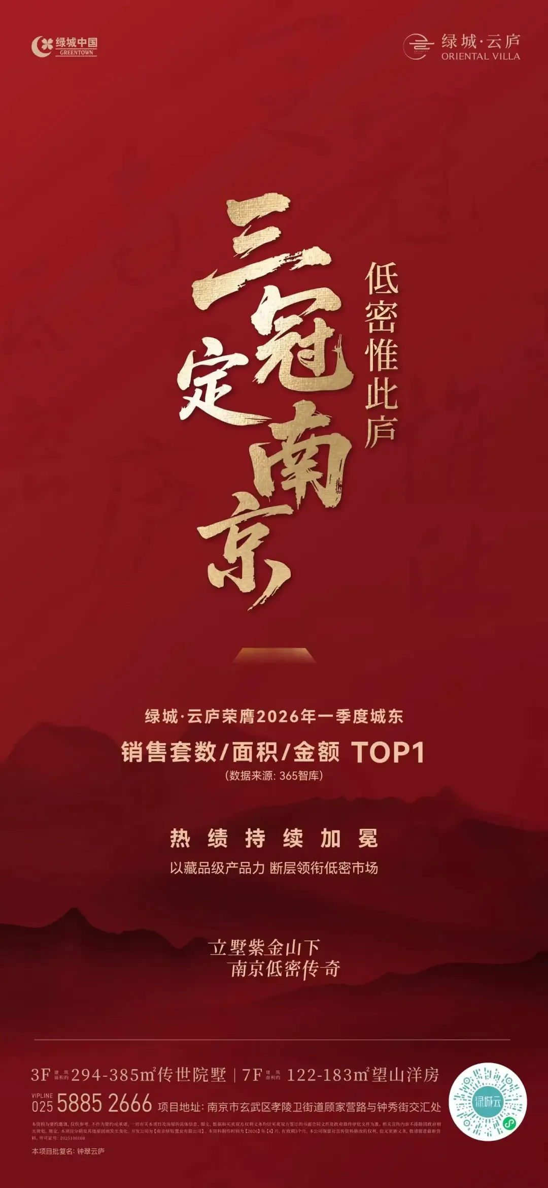 南站秦淮新河旁映秦淮,3月劲销超2.89亿元,据说马上还要有洋房新品加推;金茂南京,定鼎南京市一季度成交金额、面积TOP1;城东绿城云庐荣膺2026年一季度城东销售套数、面积、金额TOP1;人居森林越秀天萃,荣膺2026年3月全市成交面积、套数TOP5;桥北上城十号院,一季度成交2.6亿元,套数、金额、面积、均价四项均是板块TOP1;河西中中建合玺东方,3月热销2亿+,领跑河西中改善市场;南京高科置业旗下多盘,3月热销约120套,卖出3.5亿;● 政策大招频出!买房成本还在降!