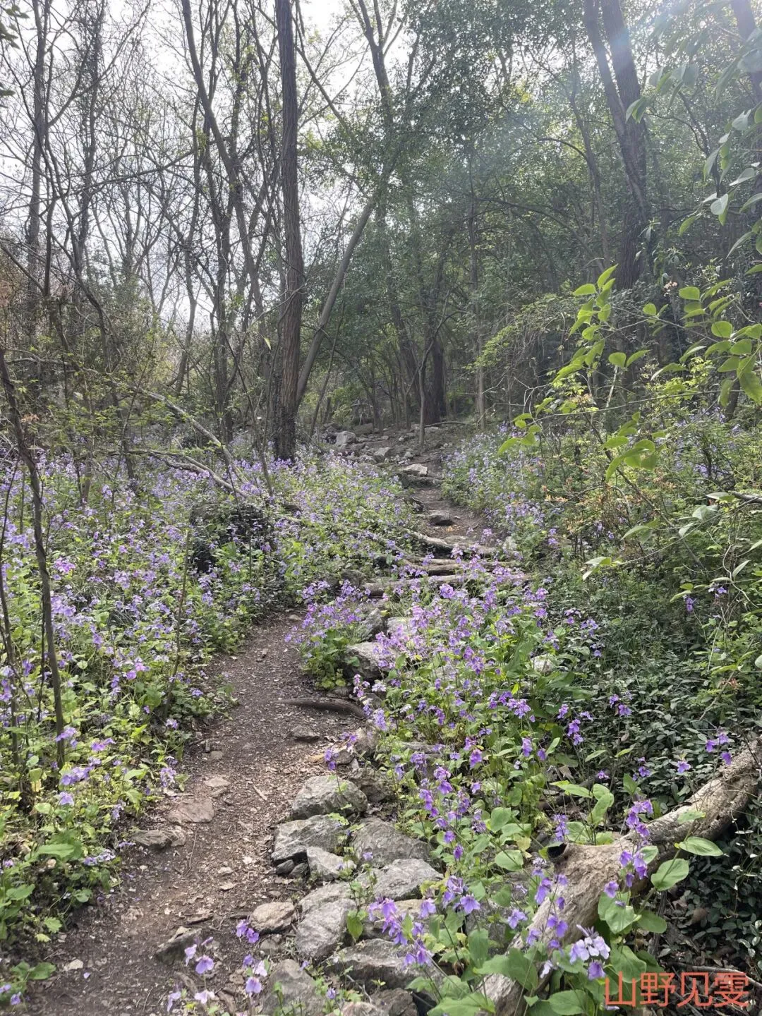 路上碰到几个人在摘野菜,瞄了一下也没看出来摘的是什么,不过想想都知道一定很美味。一转身,竟然踏入一片二月兰花海,本来我已经满头大汗灰头土脸,突然给我来个浪漫袭击,这种不期而遇的惊喜,太美好了。
