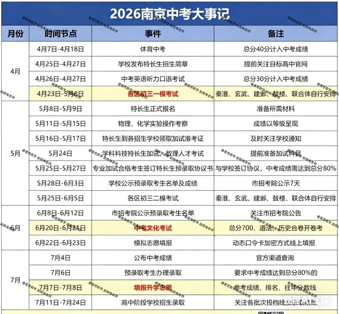 >2026南京中考大事记