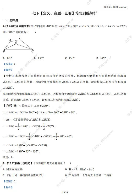 整理分析完南京各校(玄武、鼓楼、秦淮等区)25年期末真题后,发现第十二章《定义、命题、证明》 是期末隐形拉分点,看似基础概念(课本内容基础),实则分值占比高(30%左右)、压轴题高频出。