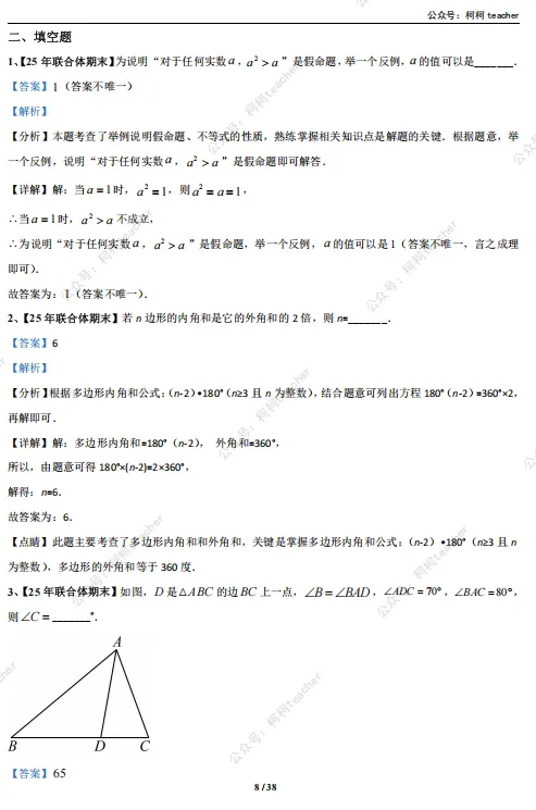 ✅ 南京期末压轴常把“命题证明”与“几何模型”结合(如平行线+角平分线模型),建议刷透南京近年各校期末考试真题,摸清出题套路。