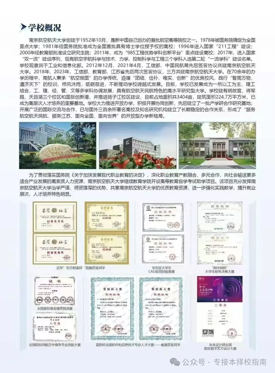 南航专接本采取全日制教学模式,学院在南航明故宫校区(校本部),空乘专业至南航最新校区——天目湖校区,共享名校优质教育资源,校园生活丰富多彩,采取“学历+技能”定向培养模式,毕业学校统一对接推荐就业。学历、技能、就业获得全方面保障。