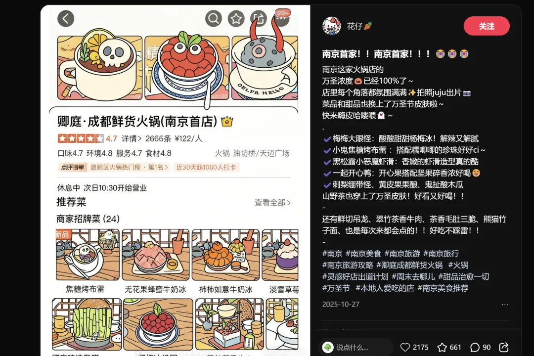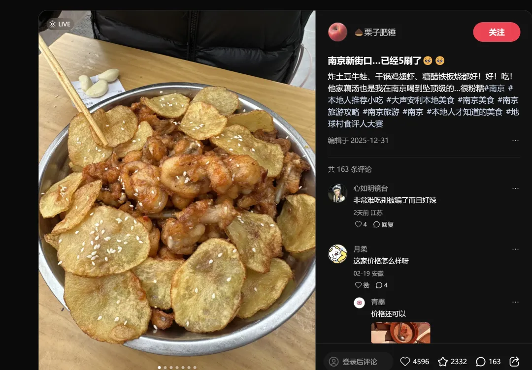 烧烤赛道, "全南京死的最值的一只鸡"2324赞,这个标题堪称"极致性价比"表达的范本。火锅赛道, "南京首家"连喊三遍拿下2175赞——首店效应依然是火锅品牌入城的最大流量杠杆。
