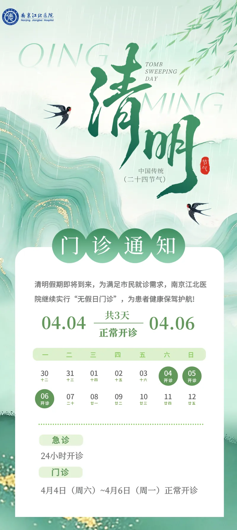 >门诊公告 | 2026年清明节南京江北医院门诊安排