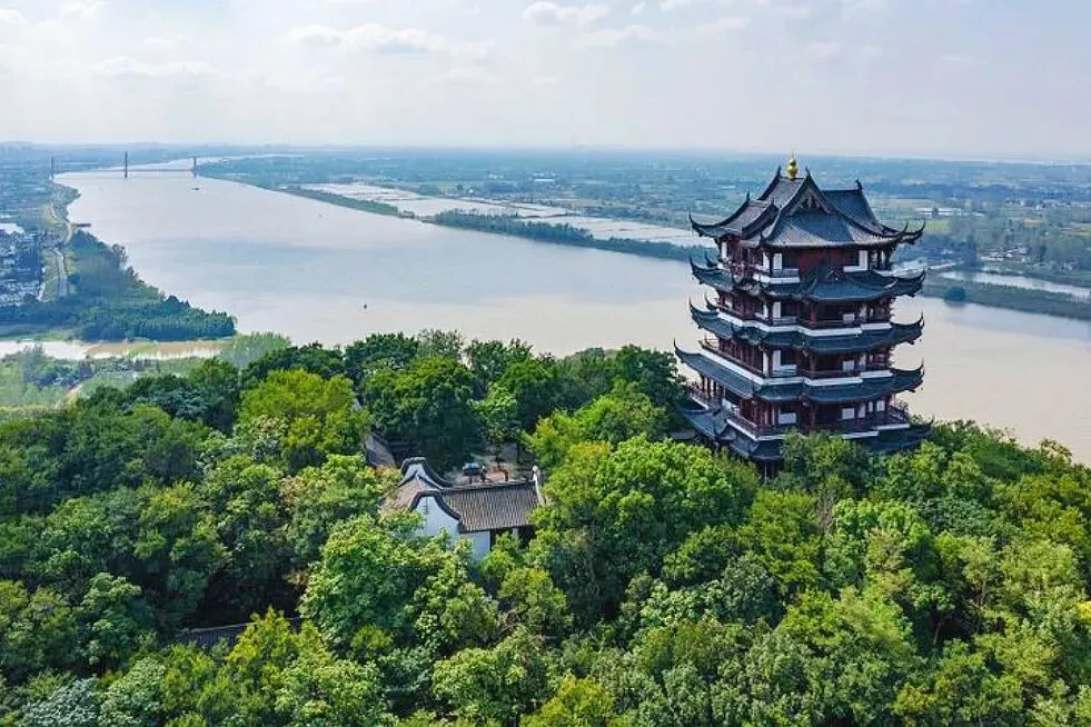 景区最高点,在翠螺山顶 。爬上去得出点汗,但往下看,瞬间解锁“会当凌绝顶”的霸气视角——江心洲把江面一分为二,脚下是奔涌的长江,货船游轮像乐高玩具似的慢慢悠悠,远处是朦胧的芜湖市,江水滔滔,山风猎猎,视野巨开阔 !