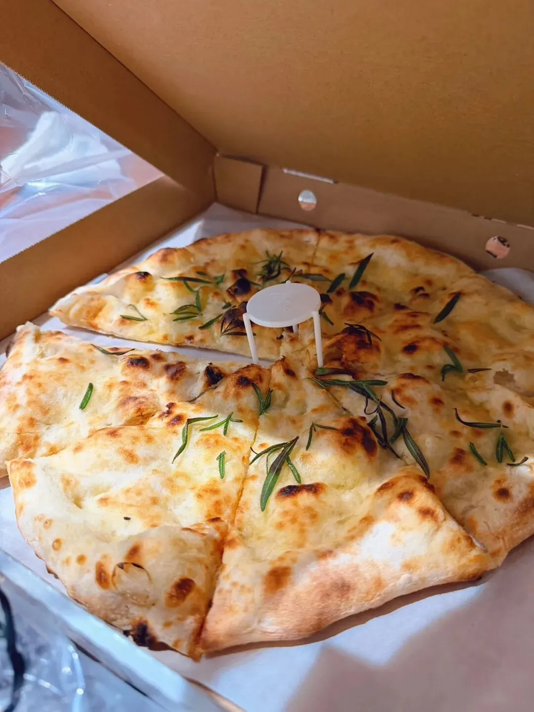 临走,饭搭子看到别桌吃的一款,说很想尝试又询问店员后加单打包一份名叫迷迭香佛卡恰,比较基础纯粹的面包口感,复烤后咸香酥脆,性价比很高