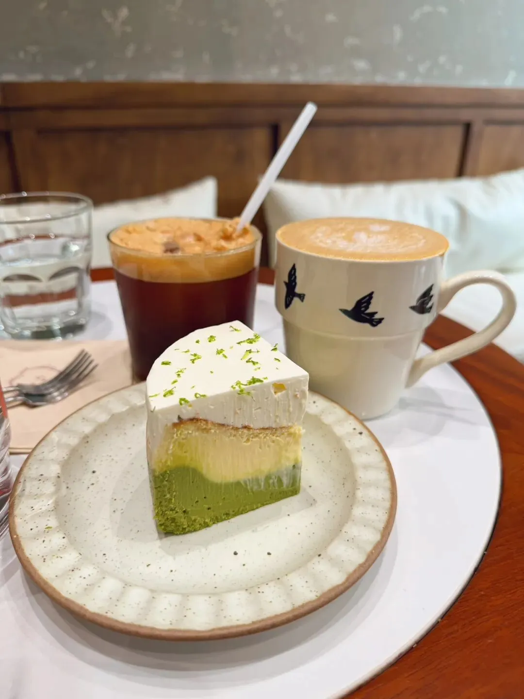 点了没尝试过的2杯,西柚汤力美式豆奶拿铁咖啡,搭配抹茶柚子巴斯克,西柚汤力更出彩点,豆奶拿铁有点寡淡,咖啡味不浓郁