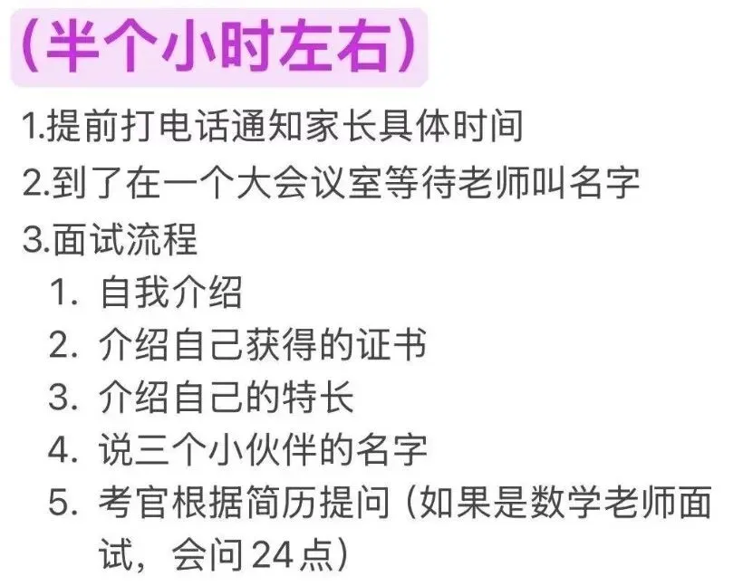 面谈内容:自我介绍、围绕简历介绍特长、证书等,还要介绍三个自己玩得好的小伙伴。