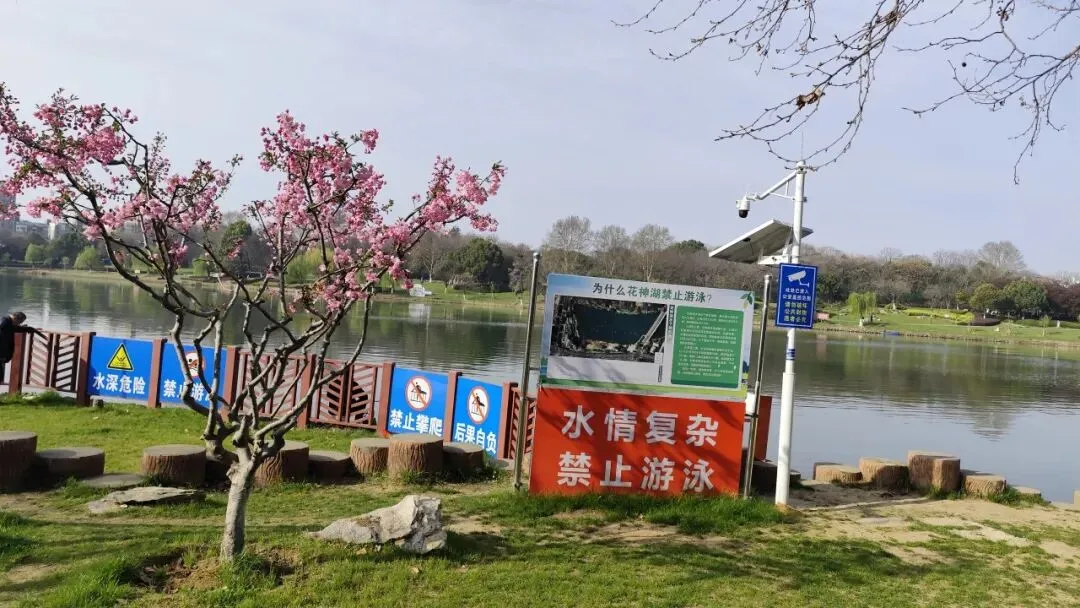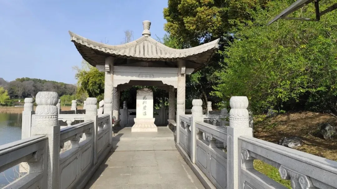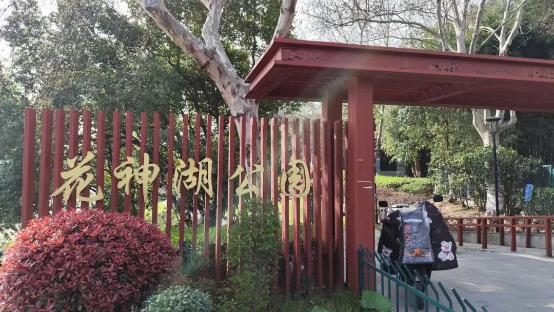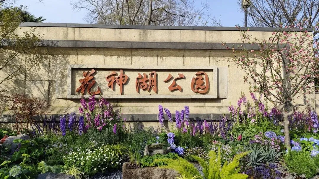 花神湖背面有花神亭,亭中立石碑,正面题“花明碧波”,背面刻南京诗人俞律撰写的《花神渡桥文》,记述花神庙历史与花神文化由来。