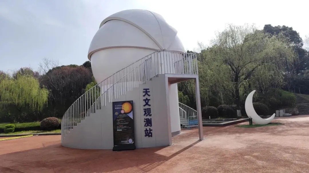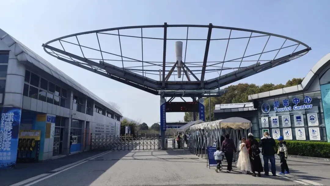 出科技馆往外走,看资料说主馆参考了 潜水艇造型,灵感来自《海底两万里》“鹦鹉螺号”。占地 12.3 万㎡,外环400 米镜湖,外边还有一个列车状的项目,据说是模拟太空站,但我没心思去玩了。打算去下个景点——雨花台。