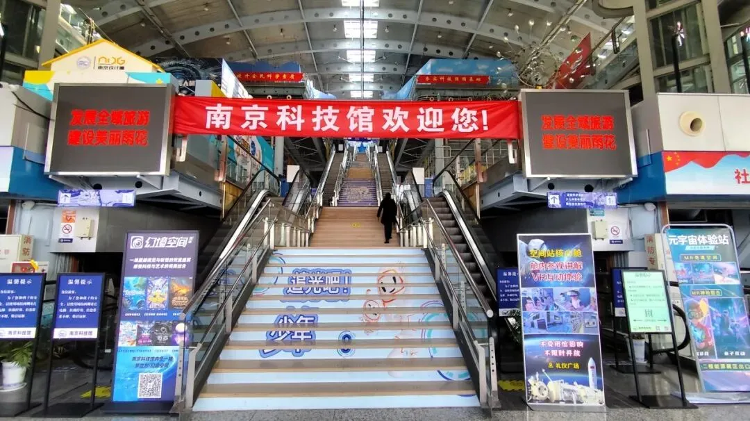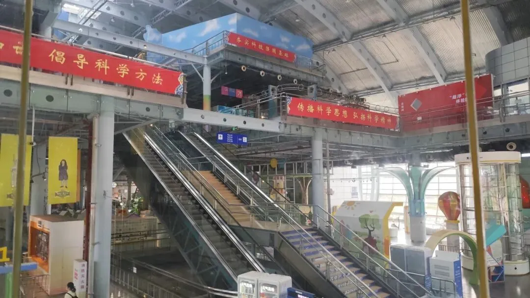 因为安全问题扶梯不开放了,可以坐电梯或者走楼梯。馆内共设有四层展厅,拥有三百余项展项,其中七成以上都可以互动体验,三楼是动漫体验馆与机器人世界,能观看机器人表演,体验动画制作、动作捕捉等趣味项目。