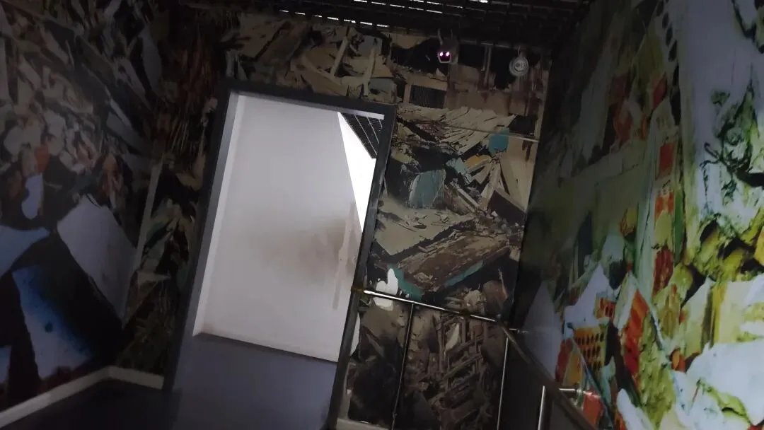 有一个项目模拟地震后的房屋,稍微小了点,体验还挺新奇的。负一层还在修建,只能从大厅中后段才有路可以下去。