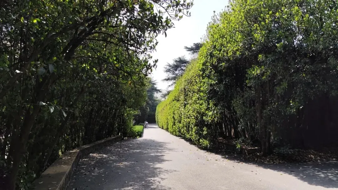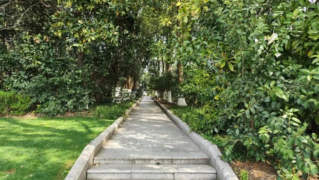 瞻仰完纪念碑,从一侧小路下去,林木长青。