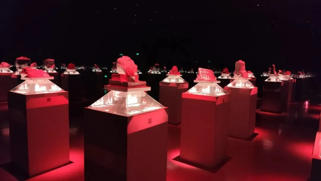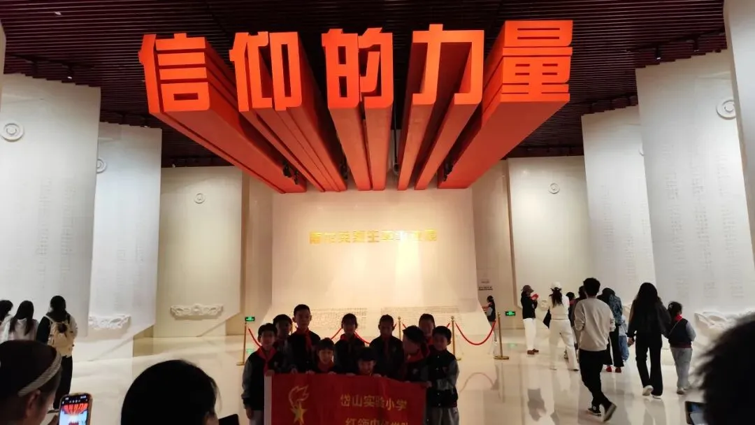 接着走到北门广场,介绍说:正对大门即为烈士就义群雕(北殉难处),由179 块花岗岩拼装,高约10.3 米、宽14.2 米、厚5.5 米,总重约1374 吨,为国内同类题材最大花岗群雕;由刘开渠等设计,塑造九位不同身份烈士,采用上实下虚手法,重点刻画神态。北入口至群雕间设三层平台,对应土地革命、抗战、解放三个历史阶段,层层抬升。