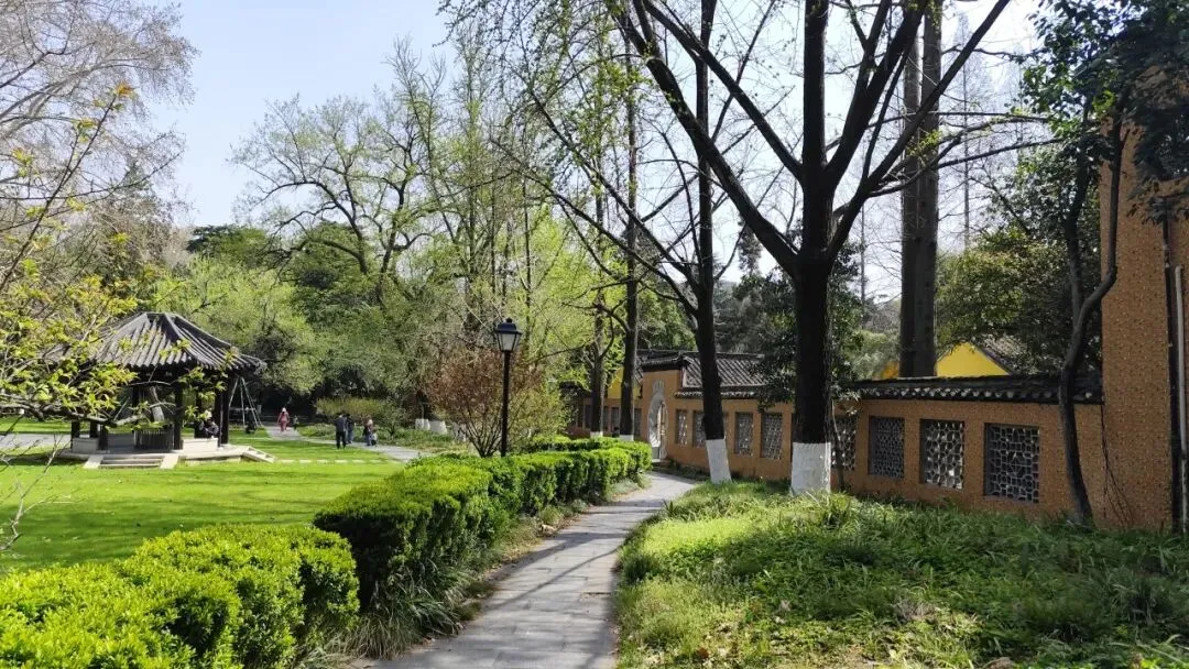穿过第二泉,到二泉纪念馆。馆内常设红色主题临展,聚焦雨花英烈事迹、革命历史文献、党史人物手迹等专题,曾先后举办“风雨情缘弥坚贞——雨花英烈革命爱情专题展”(展出15位雨花英烈与伴侣的情书、照片等160余件史料)、“负笈莫城为报国——东方大学与中国劳动共产主义大学档案文献展”(展出来华留学的雨花英烈珍稀档案)、“董必武手迹展”等重要展览,以珍贵文物、历史照片、文献档案系统呈现革命年代的信仰与情怀。