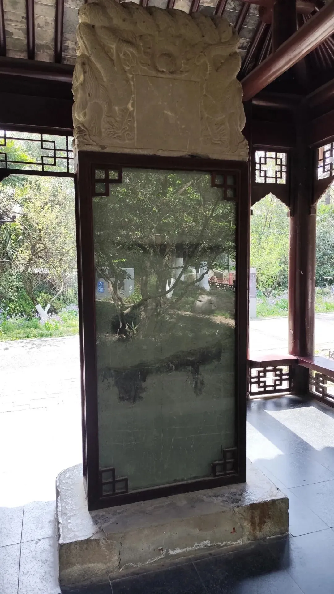 现存碑亭为1996—1997年景区在原址重建,采用四角仿明清形制,黄瓦朱柱、古朴雅致,亭额题“乾隆御碑亭”,2006年“乾隆御碑”被列为南京市文物保护单位。