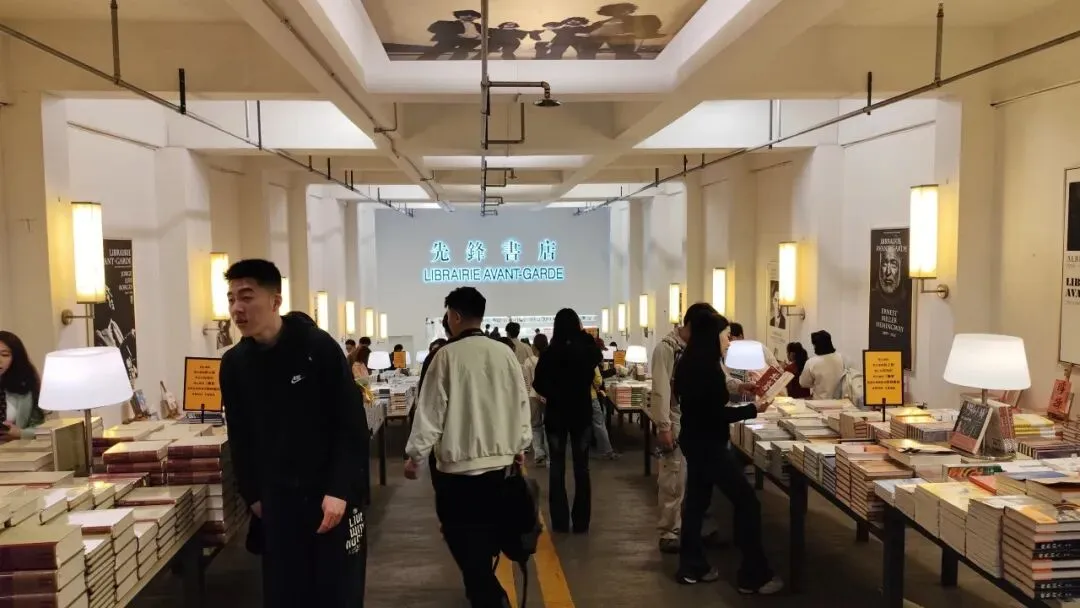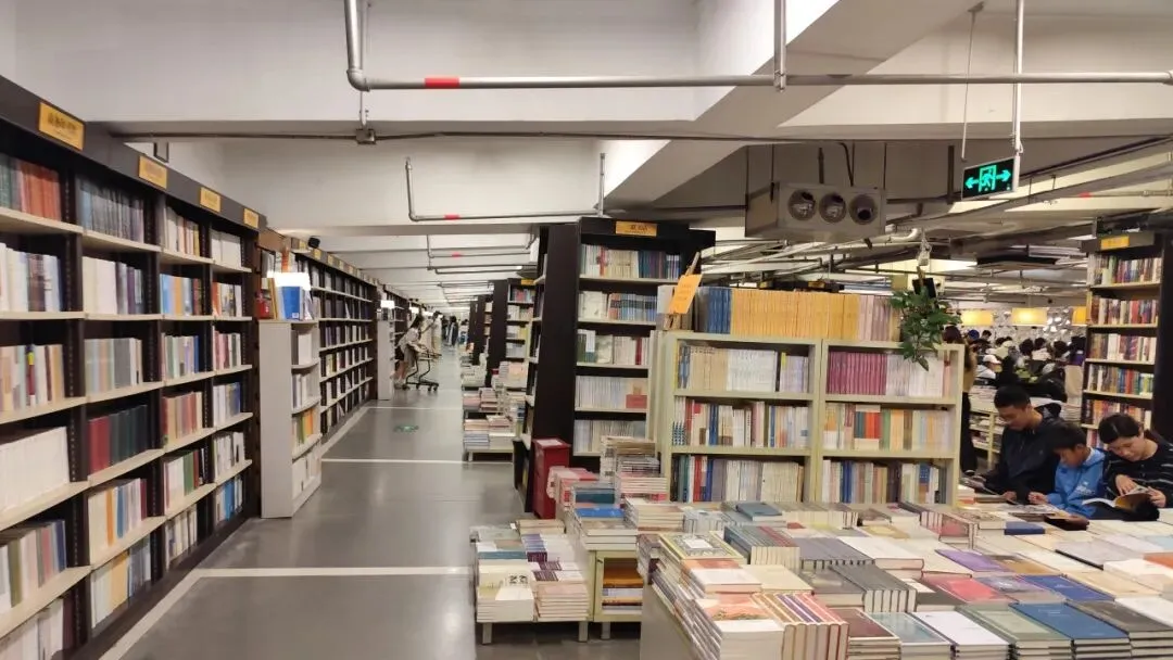 我俩又走了两公里,去先锋书店五台山总店逛了逛,来这边的人非常多。书店的布置很有意思,先是沿着下坡,像走进地下车库一样,到书店里。书摆放在架子上陈列出去,整个书店的面积非常大,基本上让位于图书,有种逛图书集市的感觉。在杭州的时候我去过国大城市广场的西西弗斯书店、西溪湿地的果麦书店、乐堤港和良渚的单向空间书店、吴山的南宋书房。它们都是在环境设计上别出心裁,例如可以俯瞰城市风景,整整一墙满是图书,让人感觉处在图书的天堂里。在这里则更有接近性,更实在一些,可以说是两种截然不同的风格。