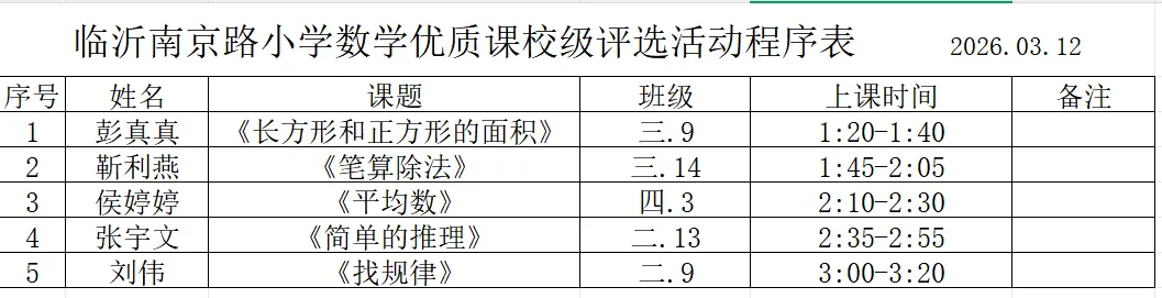 3月12日,临沂南京路小学开展数学校级优质课评比活动,旨在选拔优秀教师备战区级比赛。本次活动共有五位教师同台竞技,评委团从教学设计、课堂实效等方面进行综合评议。参赛教师立足新课标,展现了扎实的教学功底与创新的课堂理念,为全校数学教师搭建了互学互鉴、共同成长的平台,有效推动了学校数学教学质量的提升。