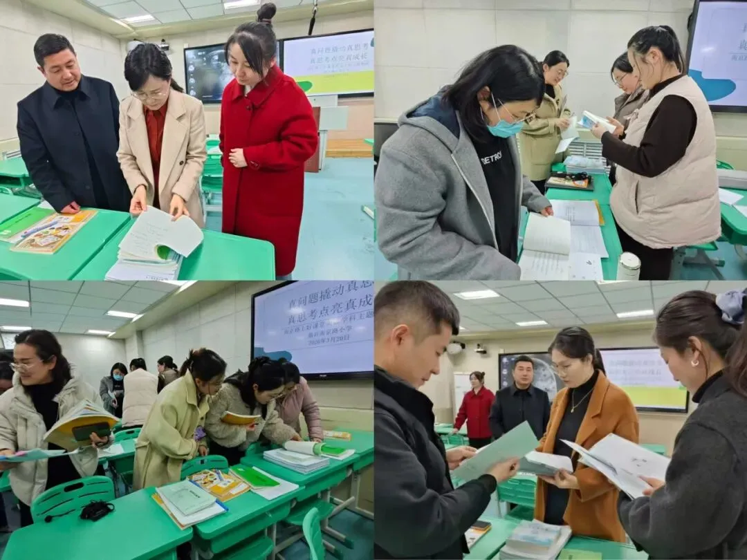 为深耕英语课堂教学实效,破解教学实践中的真实难题,推动教师专业能力提升与学生核心素养培育同频共振,3月20日下午,临沂南京路小学全体英语教师齐聚教研活动室,开展以“真问题撬动真思考,真成长赋能真课堂”为主题的英语学科教研活动。活动由英语兼职教研员张秀惠主持,学校副书记李丽华、副校长孙鹏云及部分教干全程参与深度研讨,为英语课堂提质增效注入新动能,为教学实践明晰新方向。英语组随即开展业务检查工作,创新采用分年级组观摩学习式检查模式,以“业务检查+分组观摩”双轮驱动,推动教师互学互鉴、共同成长。