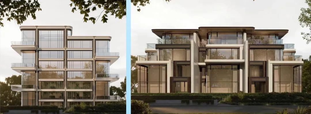 效果图显示,建筑立面采用全落地窗设计,窗墙比极高;多层住宅的边户设有“L”型环绕露台,客厅采用错层挑空。根据规划要求,该项目住宅户型面积不得低于160㎡,户均建筑面积不低于190㎡。结合22038元/㎡的楼面价、1.1的超低容积率以及百家湖的核心地段,该项目若于四季度如期入市,大概率将成为江宁楼市的价格与产品“天花板”。