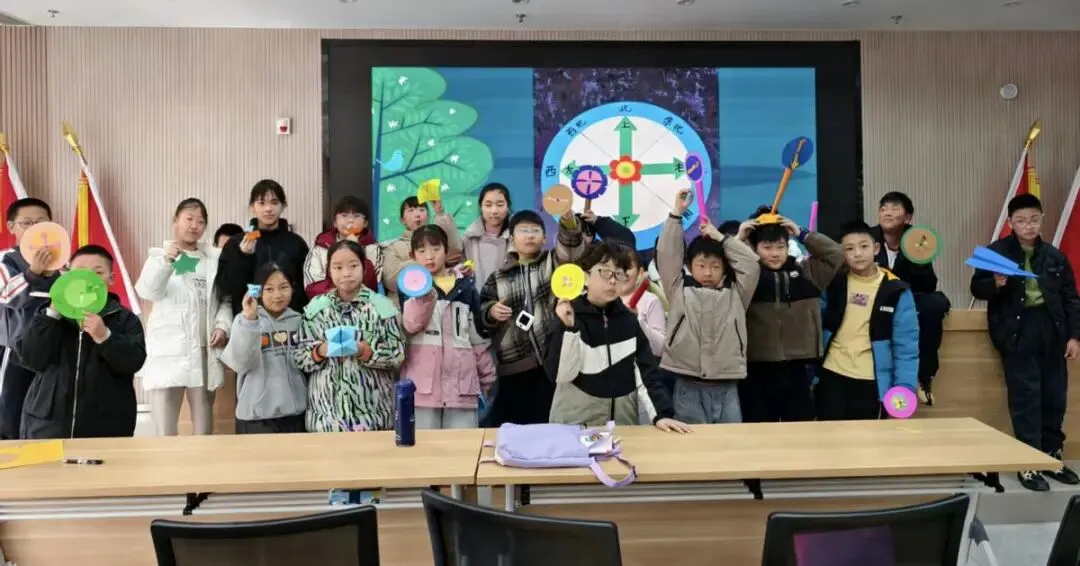 动手制作简易风向标时,孩子们用圆规、硬纸板等材料,一步步完成组装。当小风向标随风转动,大家欢呼雀跃,切身感受到科学实验的乐趣与成就感,探索科学的种子也在心中悄悄发芽。