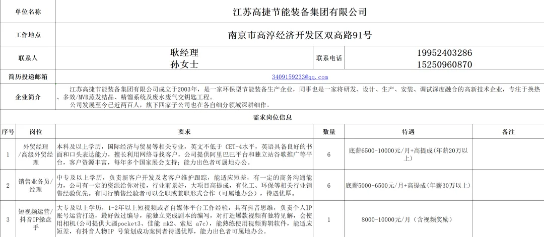 【南京招聘】行政管理、仓管、前台接待、销售内勤、工程师等岗位,这些企业正在招聘中,期待您的加入!