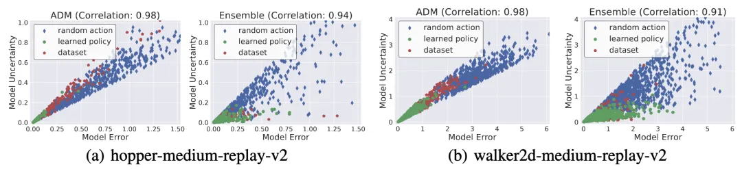 图 3:ADM 与模型集成在不确定性估计上的相关性对比。