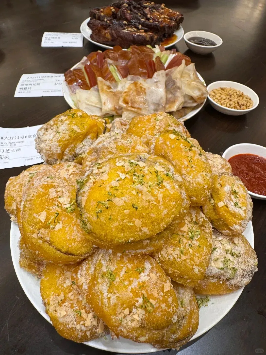 这里的菜基本闭着眼睛点都不踩雷。那个芝士燕麦茄夹挺让人惊喜的,外层炸得酥脆,咬开里面竟然是拉丝的芝士和软糯的茄肉,能吃出来是用心手工现包的。
