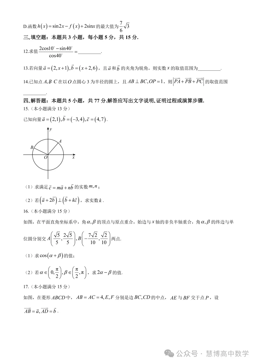 2025-2026江苏南京市中华中学高一下学期调研试卷(一)数学试题+答案(2026.3)