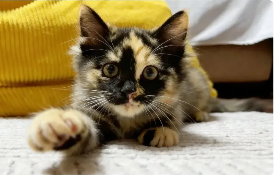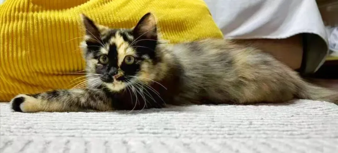 宠物故事:我每天早晚都会去院子里喂流浪猫。1月15号第一次见到这只长毛玳瑁小猫时,它怯生生地躲在角落,瘦得只剩一把骨头,我喂了它一个罐头,它狼吞虎咽的样子让我心疼。16号我又在同一个地方见到了它,它已经愿意主动靠近我,用小脑袋蹭我的手心。 1月17号,我下定决心把它带回了家——因为天气预报说18号会有大雪,这么小的猫在外面肯定熬不过去。现在它已经在家里养了一个多月,我给它做了两次驱虫,也打了第一针疫苗,它从一开始的胆小怕人,变成了会主动蹭我、呼噜呼噜撒娇的小宝贝。 它的毛发像打翻的调色盘,黑、棕、黄交织在一起,每一缕都藏着它独一无二的故事。它经历过流浪的寒冷,却依然对人类充满信任,会用湿漉漉的眼睛看着你,仿佛在说“我很乖,带我回家吧”。 我希望能为它找到一个真正有爱心、有责任心的家,让它再也不用在寒风里等待罐头,能在温暖的陪伴里度过一生。