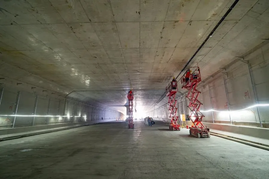 走进机场二通道绕城以北段项目施工现场,并排的六孔隧道主体结构已成型。中间两孔为主干道,两侧分为左右向匝道及非机动车道、人行道,实现了人车分流。