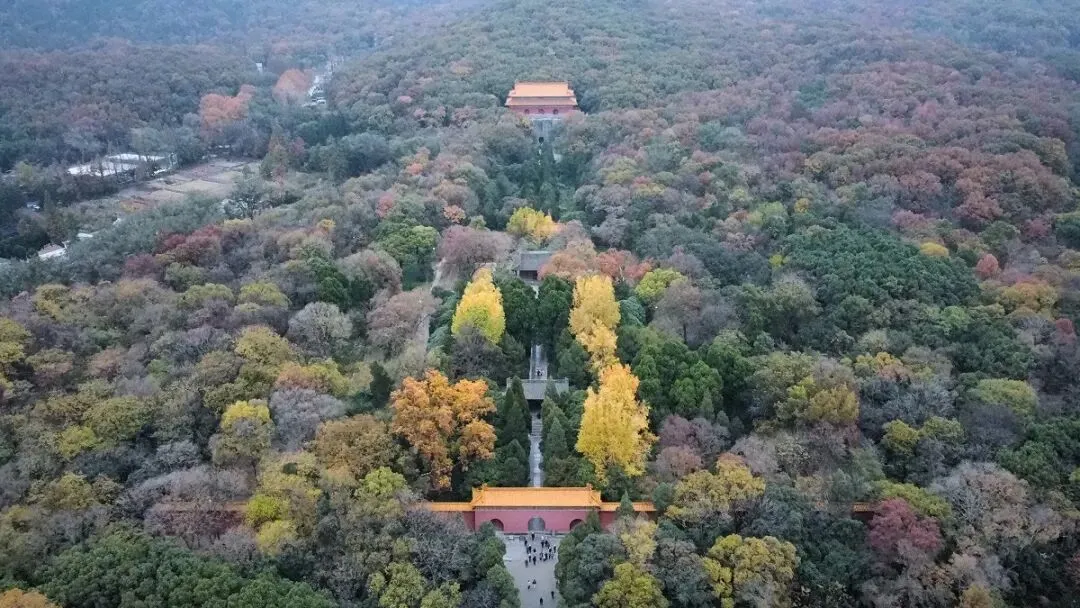 每到深秋,乌桕红、银杏黄、枫叶赤,与灰白的石兽交织在一起。这条路被南京人称为“最美六百米”。