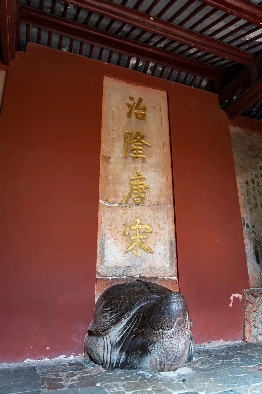 进文武方门,便是碑殿。殿中最引人注目的,是康熙皇帝御书的“治隆唐宋”四个大字。康熙一生六次南巡,五次亲赴明孝陵祭拜,行三跪九叩大礼。一个清朝皇帝,对前朝开国之君行如此大礼,这在历史上极为罕见。康熙为什么要这样做?无非是为了安抚江南民心,告诉天下人:我敬重你们的太祖,也请你们敬重我。