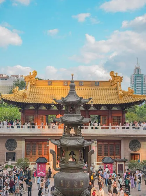 很多人去上海,静安寺都在行程里,但大部分人去了就是拍个照,看一眼那个金光闪闪的大殿,然后匆匆离开,因为周围是商场是写字楼是地铁口,人来人往的,很难让人觉得这是个"正经寺庙",更像是个景点,一个被高楼包围的景点,一个被商业气息淹没的景点。