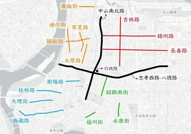 之前的文章也有提到,为什么台湾满街“中山路”,大陆却到处“人民路”?台湾的城市街道命名,有着一种近乎浪漫的逻辑。以台北市为例,它就像是一张微缩的中国地图:
