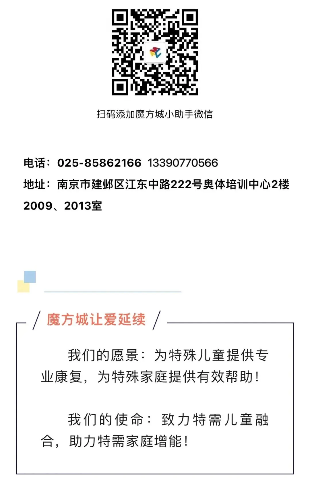 从直播间的电波传递,到奥体中心的户外宣传;从专业的科普分享,到暖心的故事传递,魔方城始终以专业为底色,以爱为初心,在孤独症支持的道路上稳步前行。