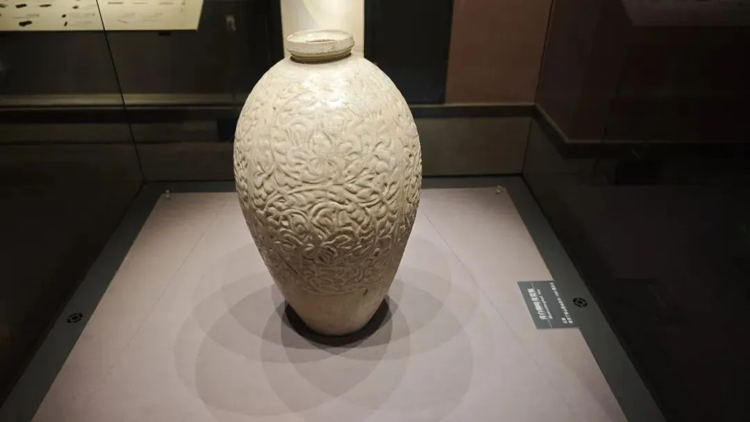 通体施青白釉,造型修长挺拔,采用刻花工艺装饰满枝缠枝花卉纹,层次丰富,立体感强。
