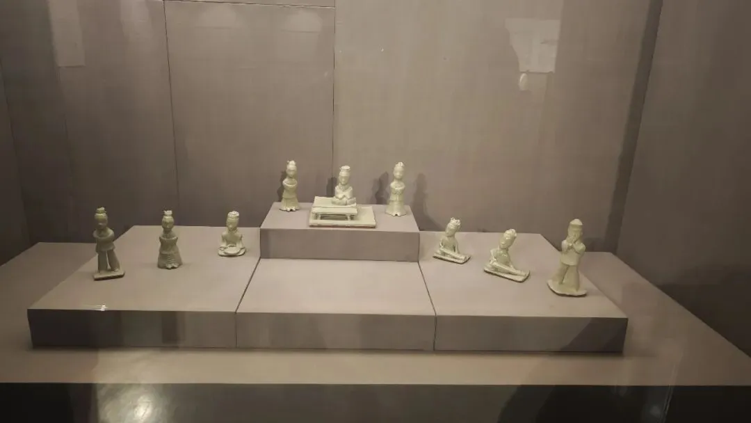 2005年出土于东晋墓葬,一组完整的六朝“乐队”,坐榻俑、击鼓俑、抚琴俑、吹奏俑……弦乐、打击乐、吹奏乐俱全,生动再现六朝贵族宴乐场景