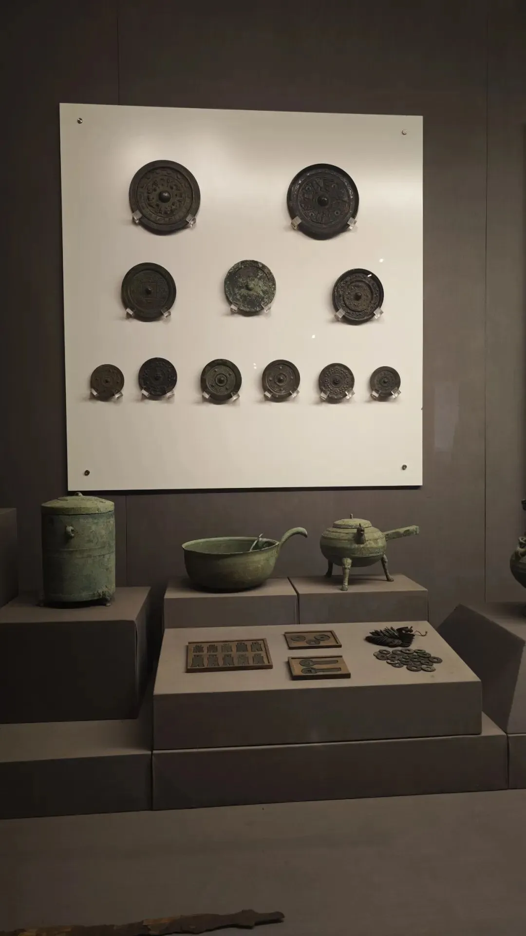 这组展陈系统展示了中国古代铜镜的发展脉络,以及配套的青铜日用器。