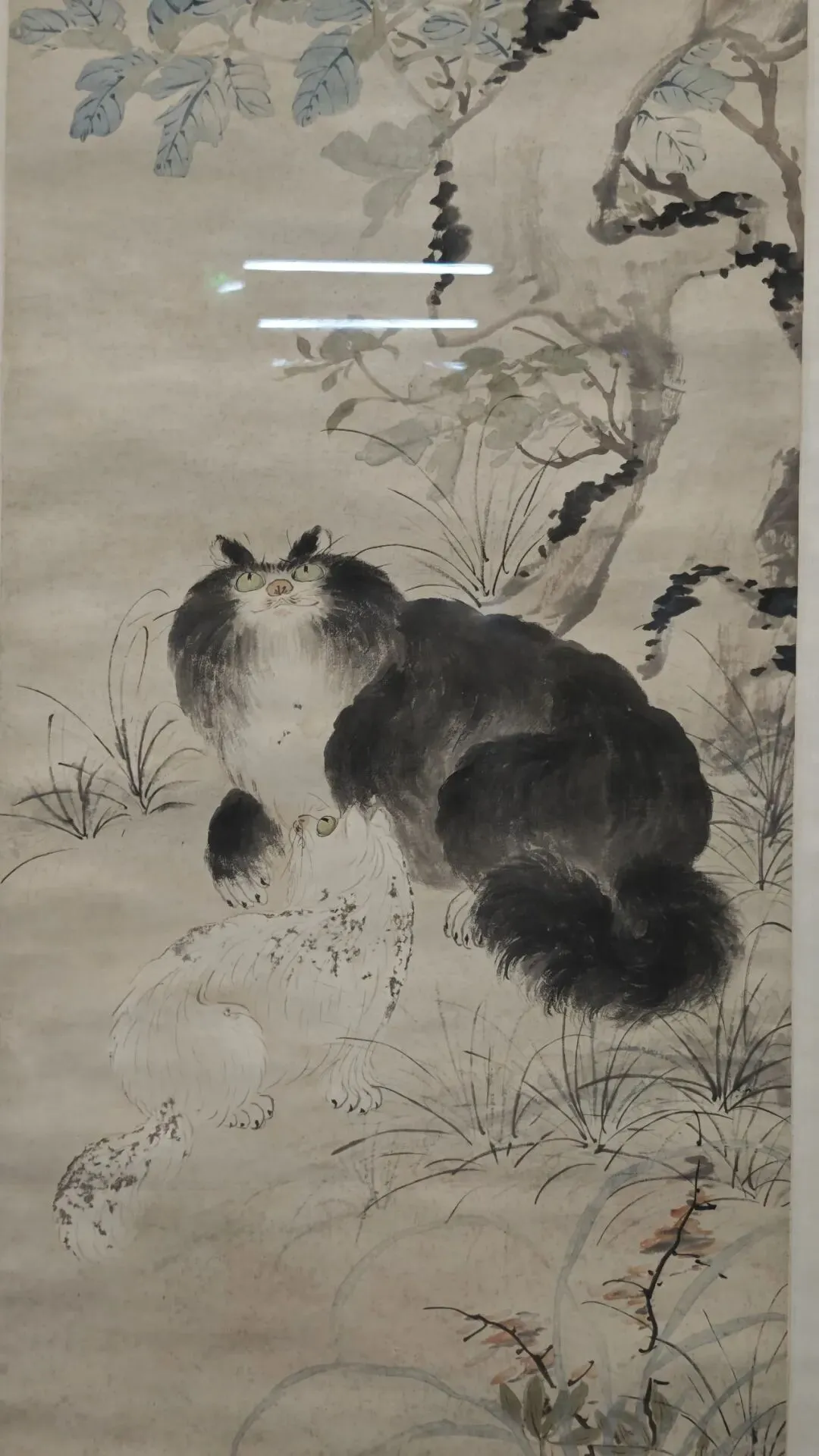 这是一幅清代花鸟画立轴,核心主题是耄耋图(寓意富贵长寿),采用兼工带写的手法。