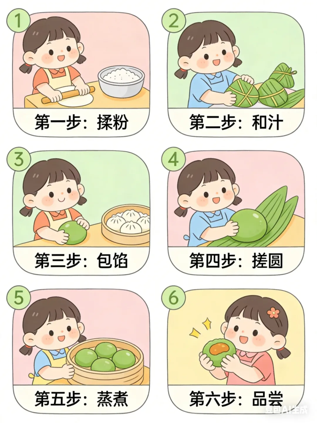 清明时节,江南一带有吃青团子的风俗习惯。青团子是用一种名叫“浆麦草”的野生植物捣烂后挤压出汁,接着取用这种汁同晾干后的水磨纯糯米粉拌匀揉和,然后开始制作团子。