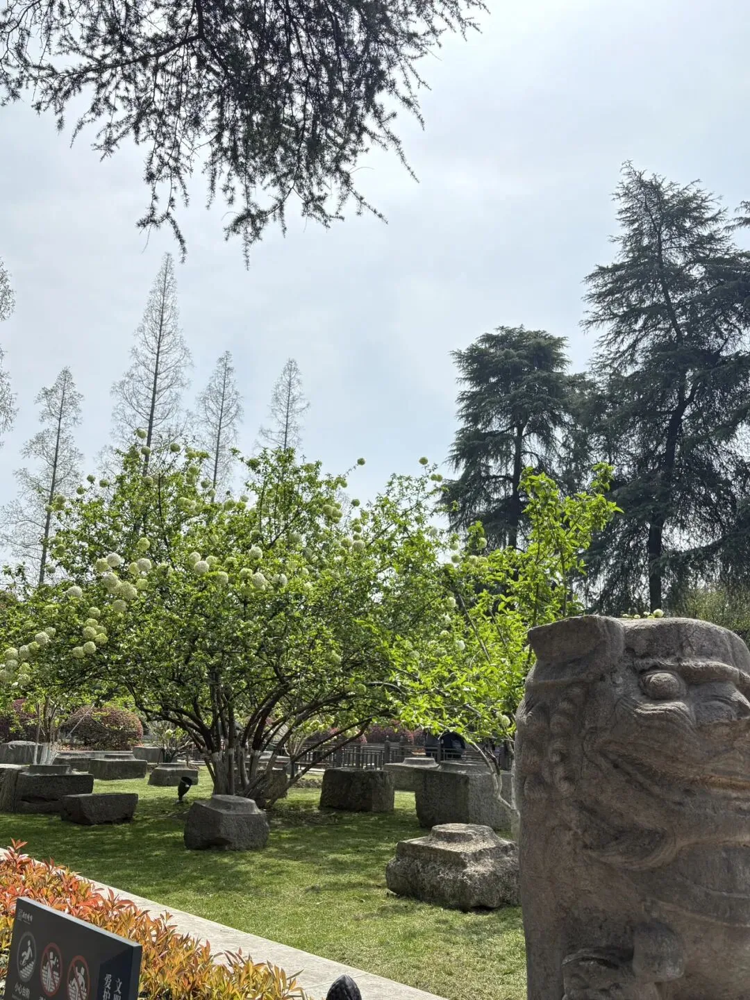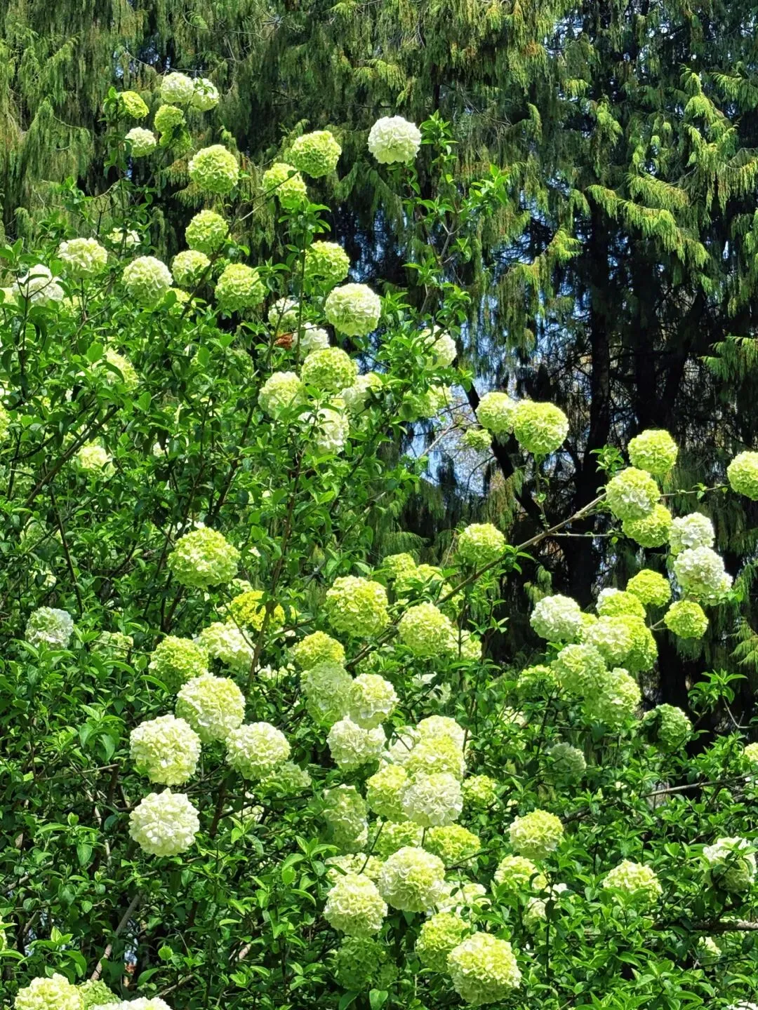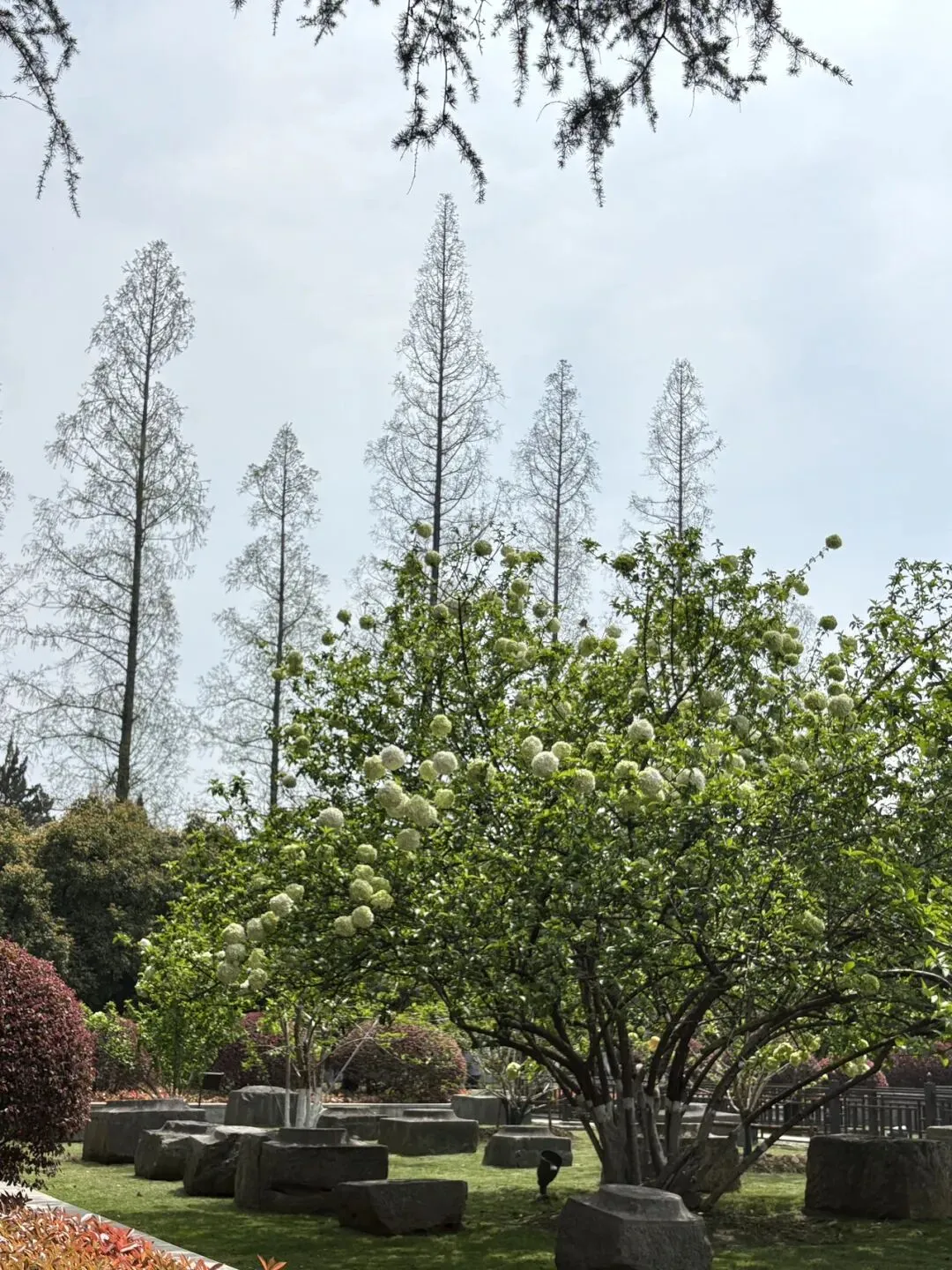 第一站,直奔妮推荐的午朝门公园,园内的中华木绣球给了我们大大的惊喜。600多年的古城墙静静矗立,斑驳的石础与古朴宫墙,藏着岁月的沧桑,而团团簇簇的中华木绣球,就开在这古韵之间,青绿渐次晕染成奶白,硕大的花球缀满枝头,像漫天飞雪落满枝头,又似天然织锦,温柔又治愈。漫步在古老的城楼之上,脚下是厚重的历史,眼前是盛放的繁花,风轻轻拂过,花影摇曳,时光都变得缓慢起来,一砖一瓦,一花一叶,写满了金陵独有的浪漫。