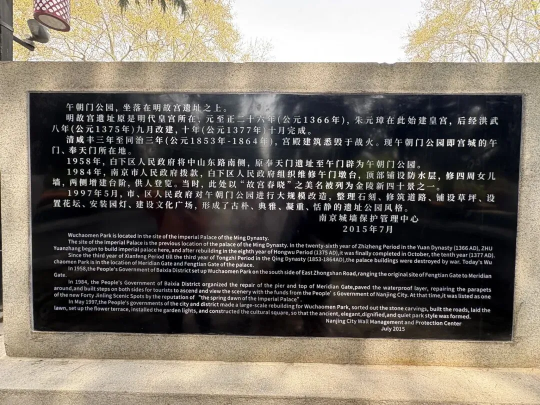 从午朝门公园出来,对面就是南京明故宫遗址公园,这里曾是中世纪世界规模最大的宫殿建筑群,更是北京故宫的蓝本,历经六百年风雨,如今只剩遗址诉说着过往兴衰。我们跟着视频讲解,慢慢探寻这座“世界第一宫殿”的前世今生,从明初洪武、建文、永乐三朝的辉煌,到迁都后的沉寂,每一段历史都让人动容。残垣断壁间,依旧能窥见当年的宏伟气势,历史的厚重感与春日的生机交融,让这场漫步多了几分别样的意义。