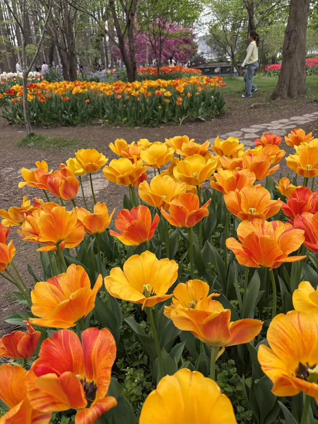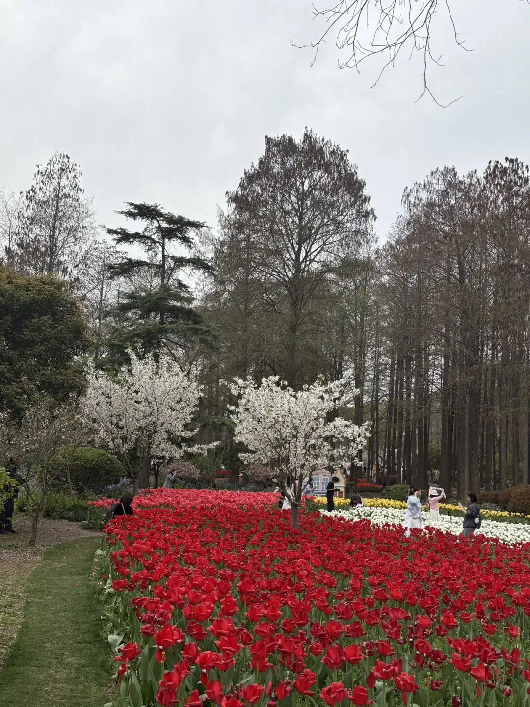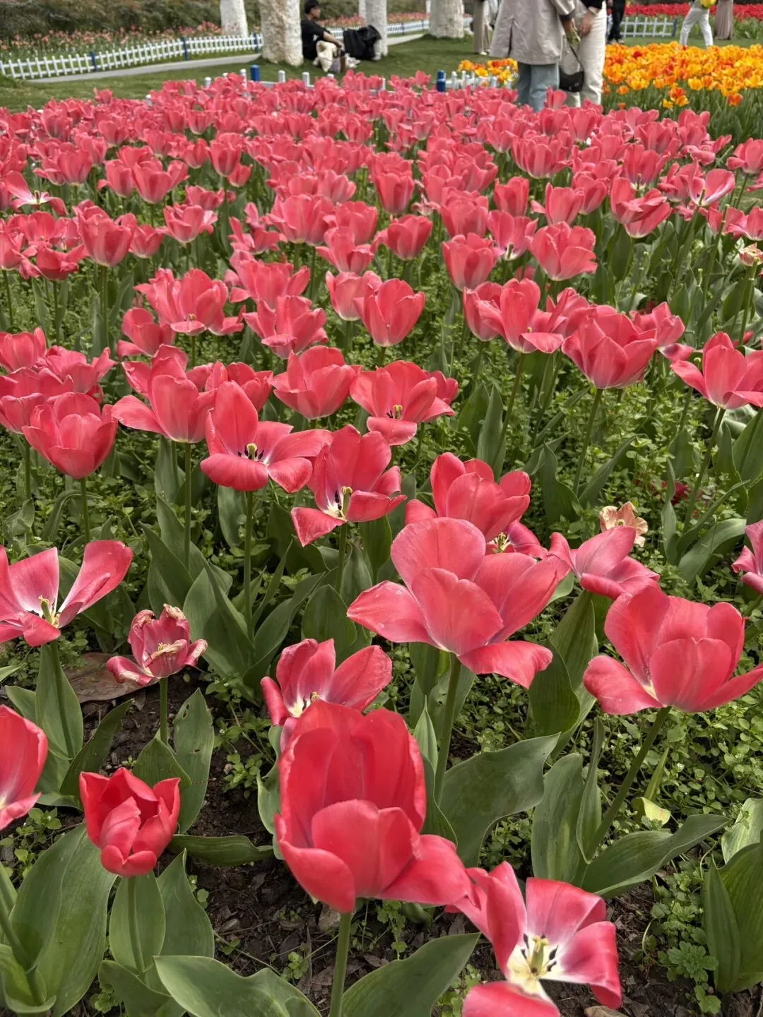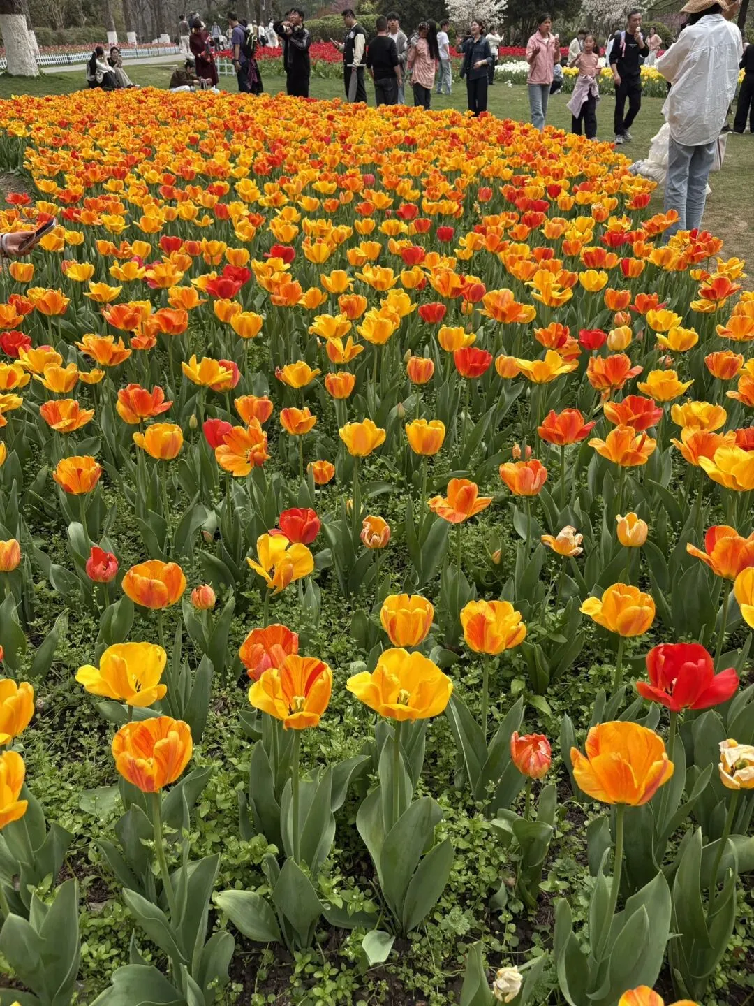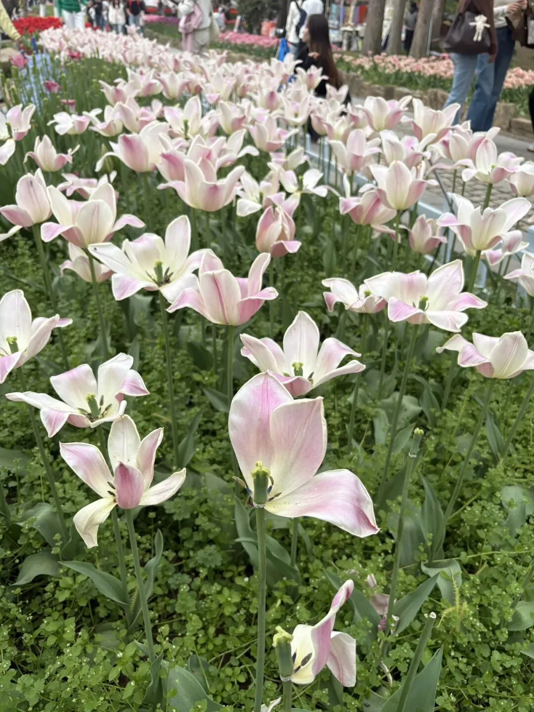稍作休整后,我们奔赴下一场春日盛宴——中山植物园。一进园区,便被眼前的景色狠狠惊艳到,近40万株郁金香竞相绽放,40多个品种、十几种色彩层层叠叠,粉的温柔、红的热烈、黄的明媚、紫的浪漫,像打翻了大自然的调色盘,绘就了一幅绝美的春日油画。园内游人如织,却丝毫不减这份秀美,郁金香顺着溪流、湖畔肆意铺展,搭配着灵动的绿植,打造出宛若童话仙境般的花境,漫步其中,仿佛闯入了莫奈笔下的花园,每一步都是风景,每一眼都是治愈。