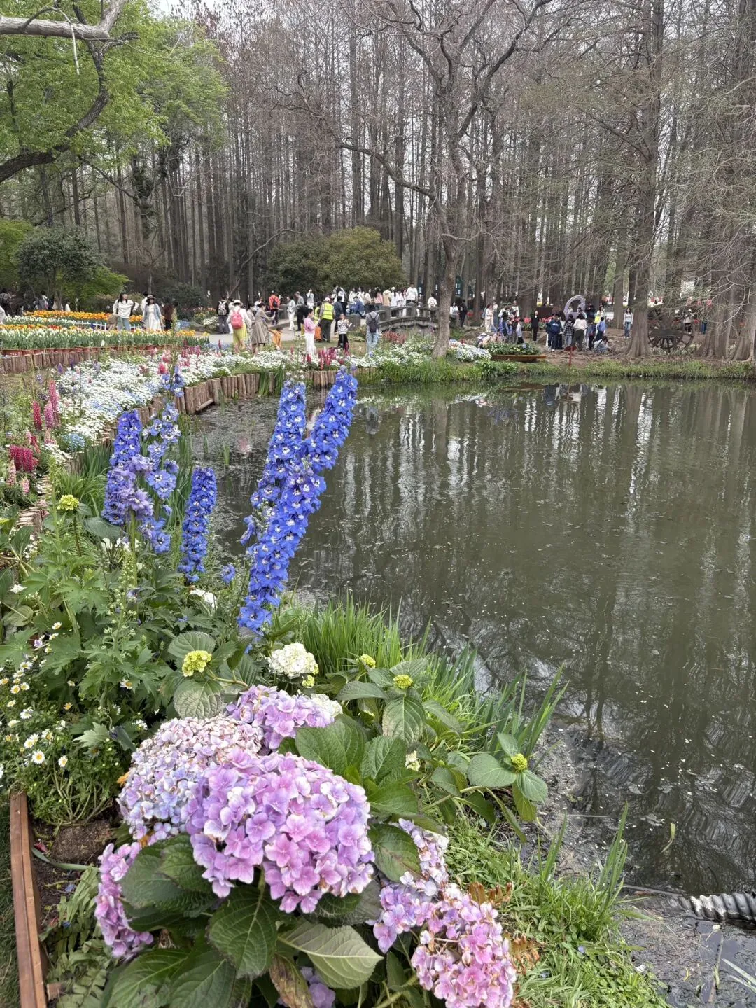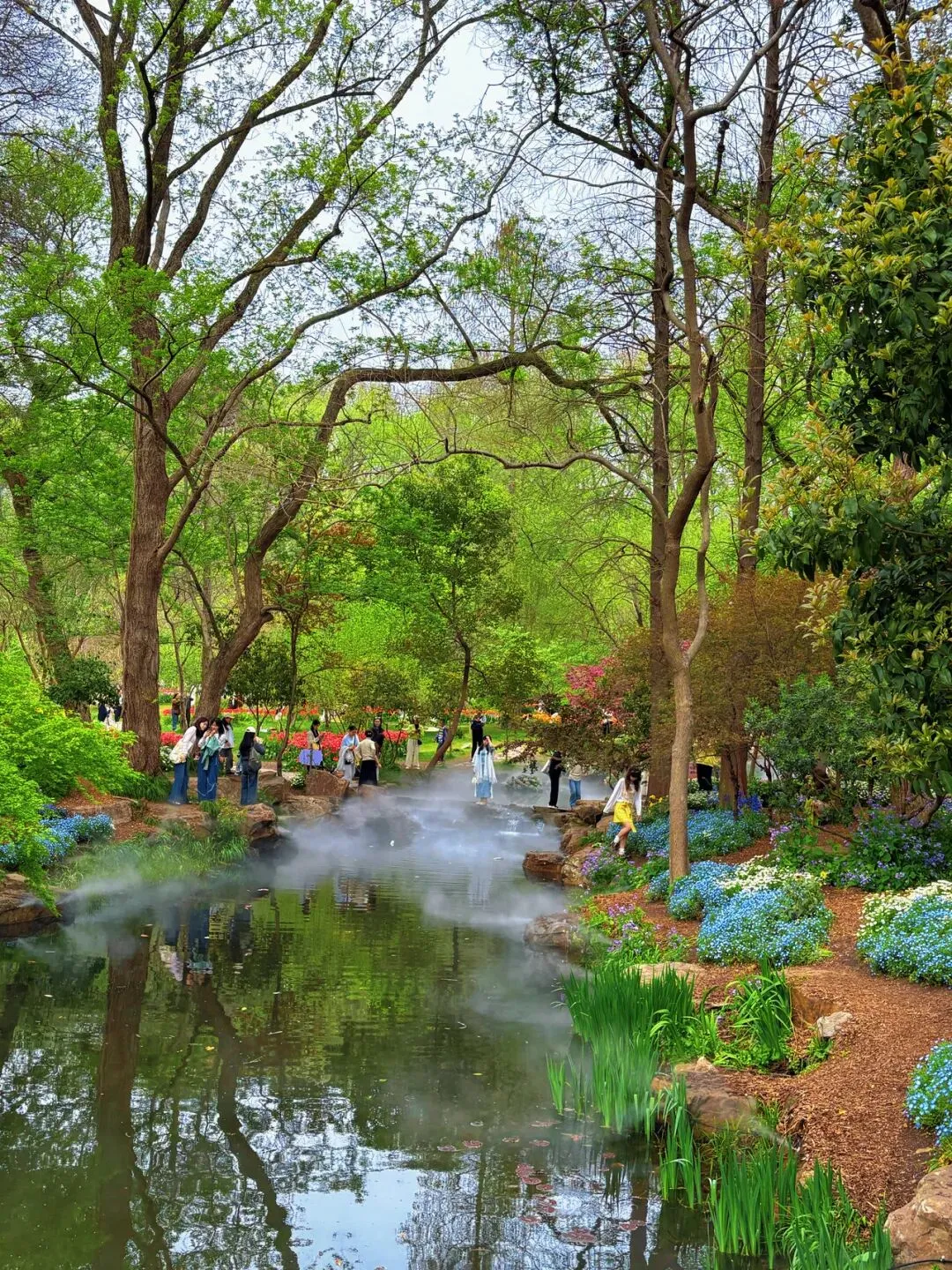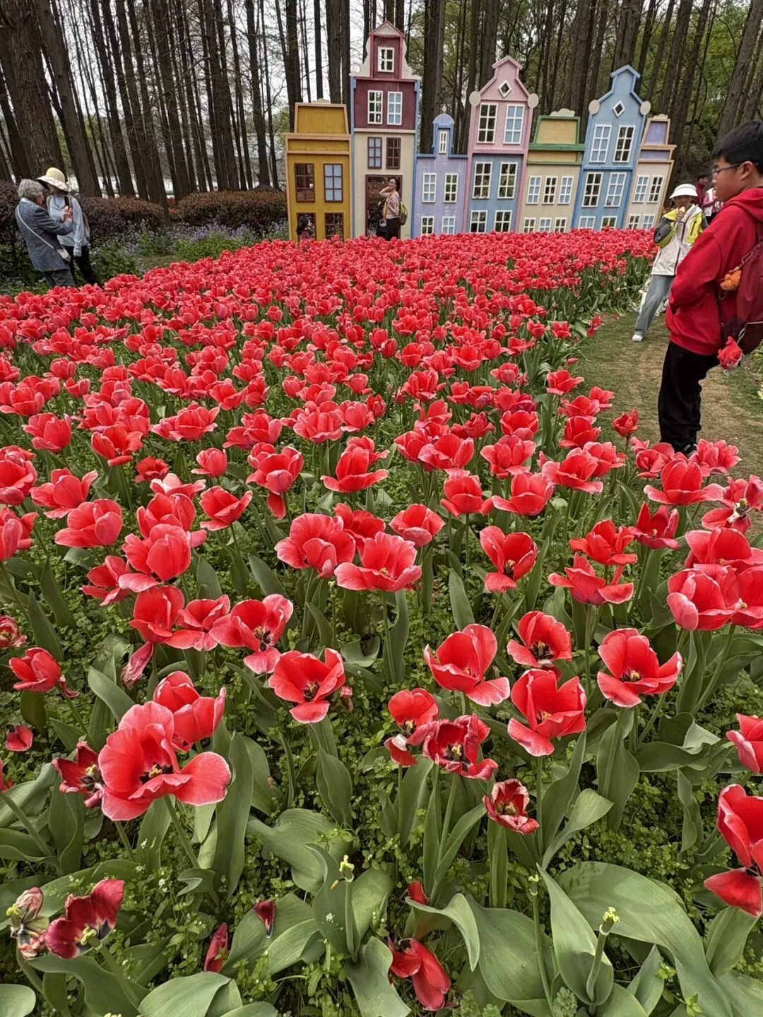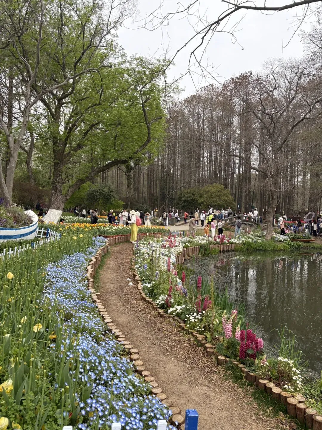 稍作休整后,我们奔赴下一场春日盛宴——中山植物园。一进园区,便被眼前的景色狠狠惊艳到,近40万株郁金香竞相绽放,40多个品种、十几种色彩层层叠叠,粉的温柔、红的热烈、黄的明媚、紫的浪漫,像打翻了大自然的调色盘,绘就了一幅绝美的春日油画。园内游人如织,却丝毫不减这份秀美,郁金香顺着溪流、湖畔肆意铺展,搭配着灵动的绿植,打造出宛若童话仙境般的花境,漫步其中,仿佛闯入了莫奈笔下的花园,每一步都是风景,每一眼都是治愈。