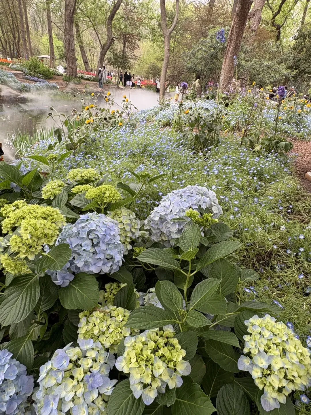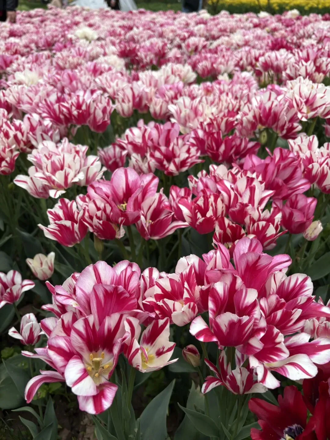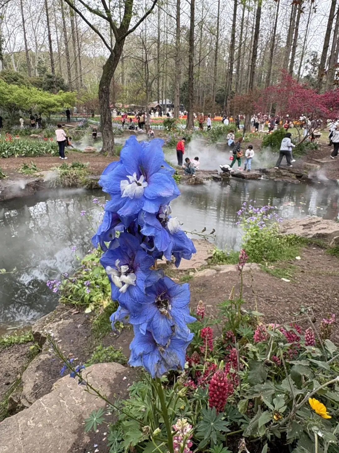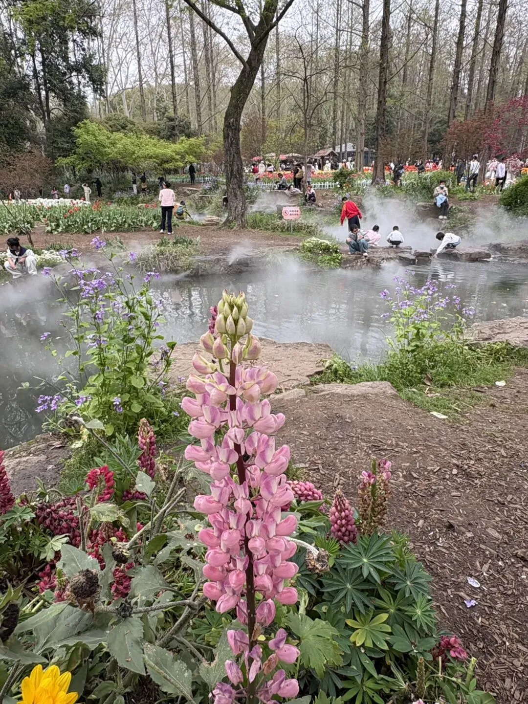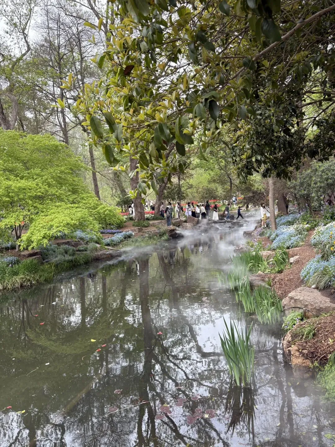 稍作休整后,我们奔赴下一场春日盛宴——中山植物园。一进园区,便被眼前的景色狠狠惊艳到,近40万株郁金香竞相绽放,40多个品种、十几种色彩层层叠叠,粉的温柔、红的热烈、黄的明媚、紫的浪漫,像打翻了大自然的调色盘,绘就了一幅绝美的春日油画。园内游人如织,却丝毫不减这份秀美,郁金香顺着溪流、湖畔肆意铺展,搭配着灵动的绿植,打造出宛若童话仙境般的花境,漫步其中,仿佛闯入了莫奈笔下的花园,每一步都是风景,每一眼都是治愈。