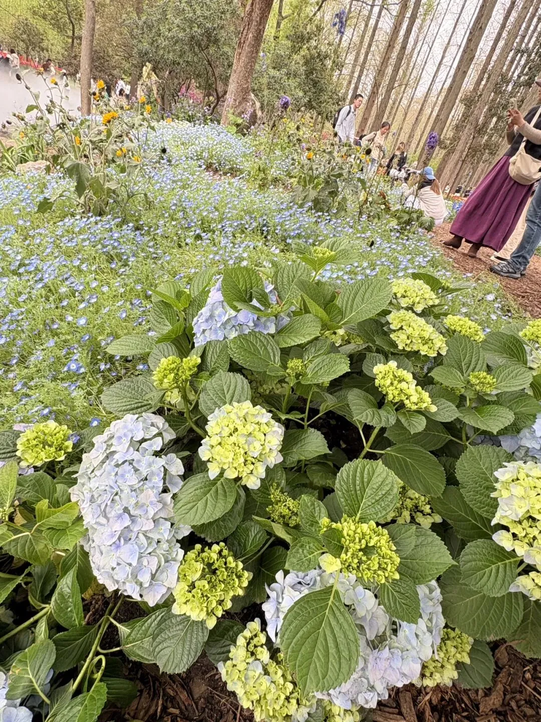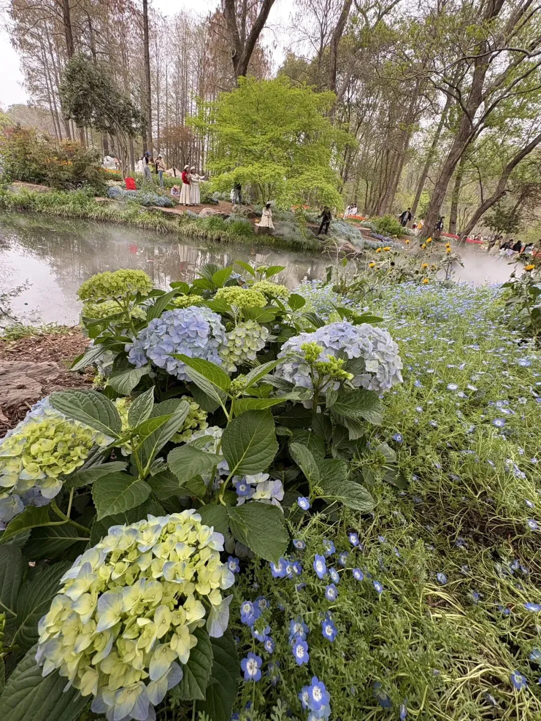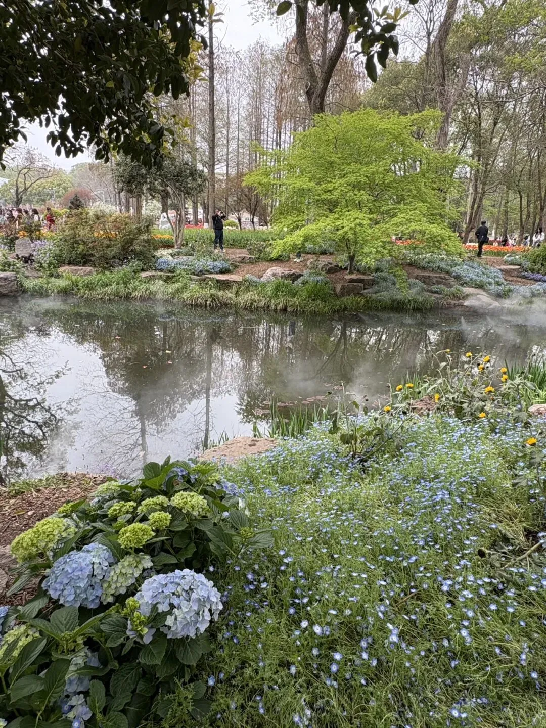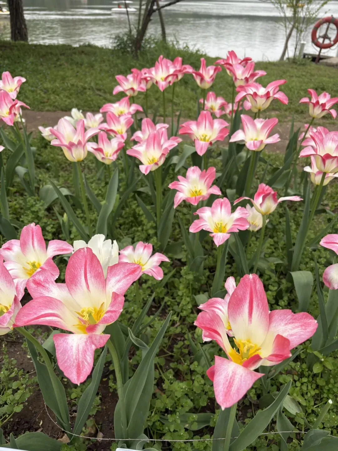 稍作休整后,我们奔赴下一场春日盛宴——中山植物园。一进园区,便被眼前的景色狠狠惊艳到,近40万株郁金香竞相绽放,40多个品种、十几种色彩层层叠叠,粉的温柔、红的热烈、黄的明媚、紫的浪漫,像打翻了大自然的调色盘,绘就了一幅绝美的春日油画。园内游人如织,却丝毫不减这份秀美,郁金香顺着溪流、湖畔肆意铺展,搭配着灵动的绿植,打造出宛若童话仙境般的花境,漫步其中,仿佛闯入了莫奈笔下的花园,每一步都是风景,每一眼都是治愈。