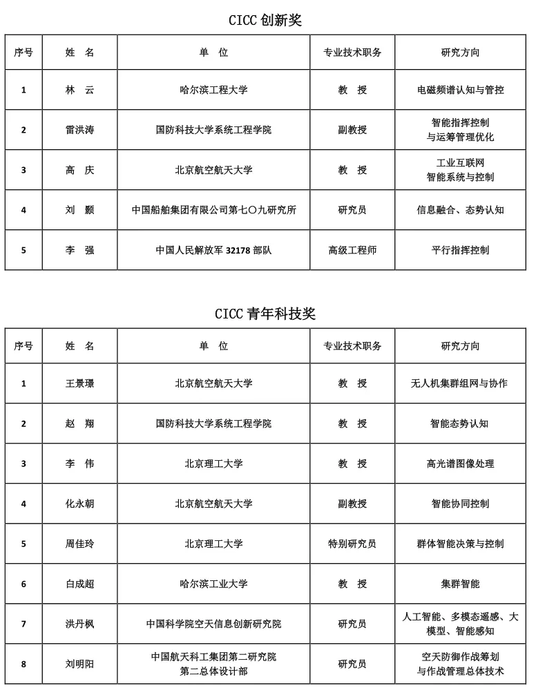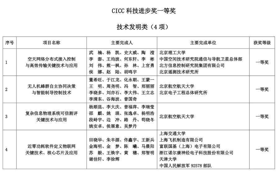 2024年度CICC科学技术奖获奖名单
