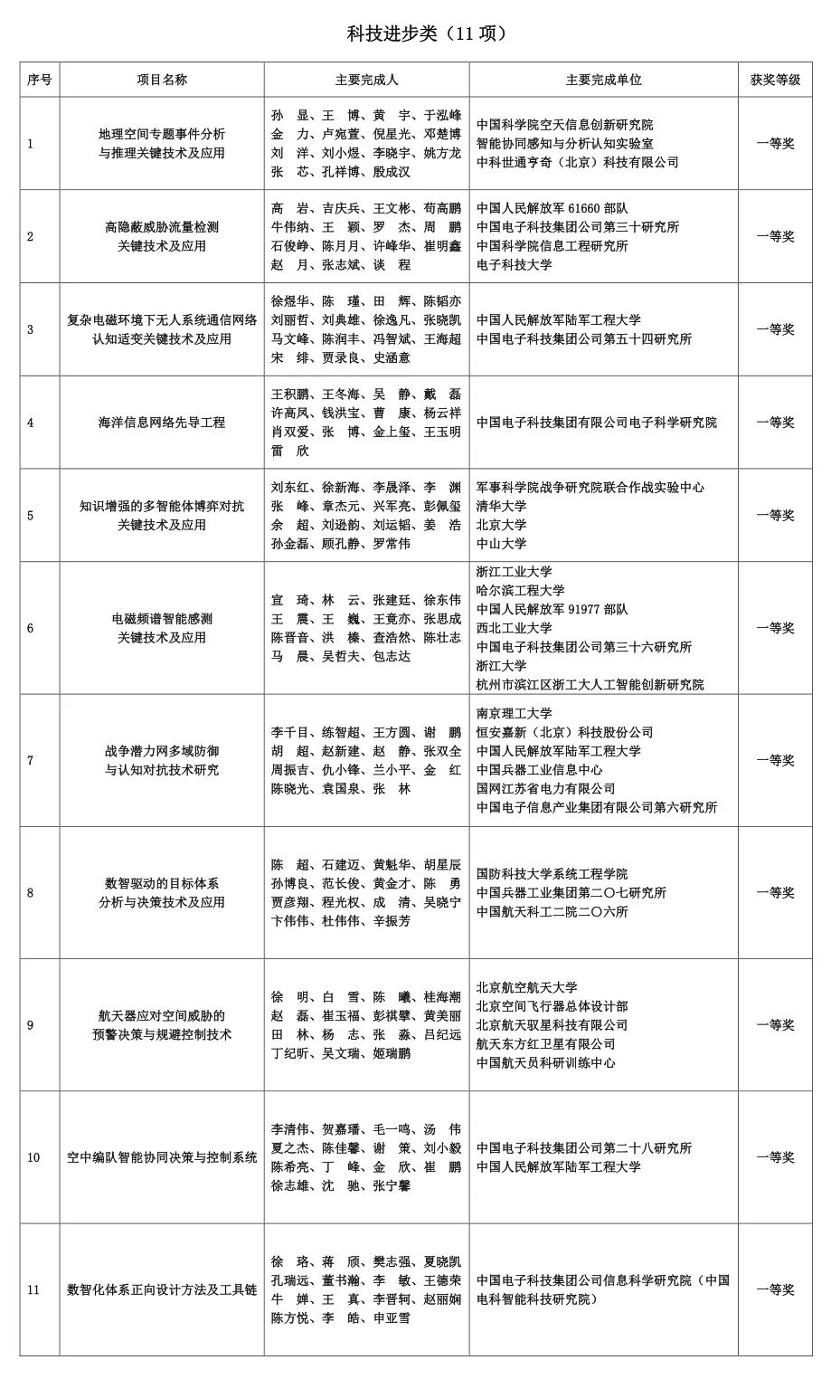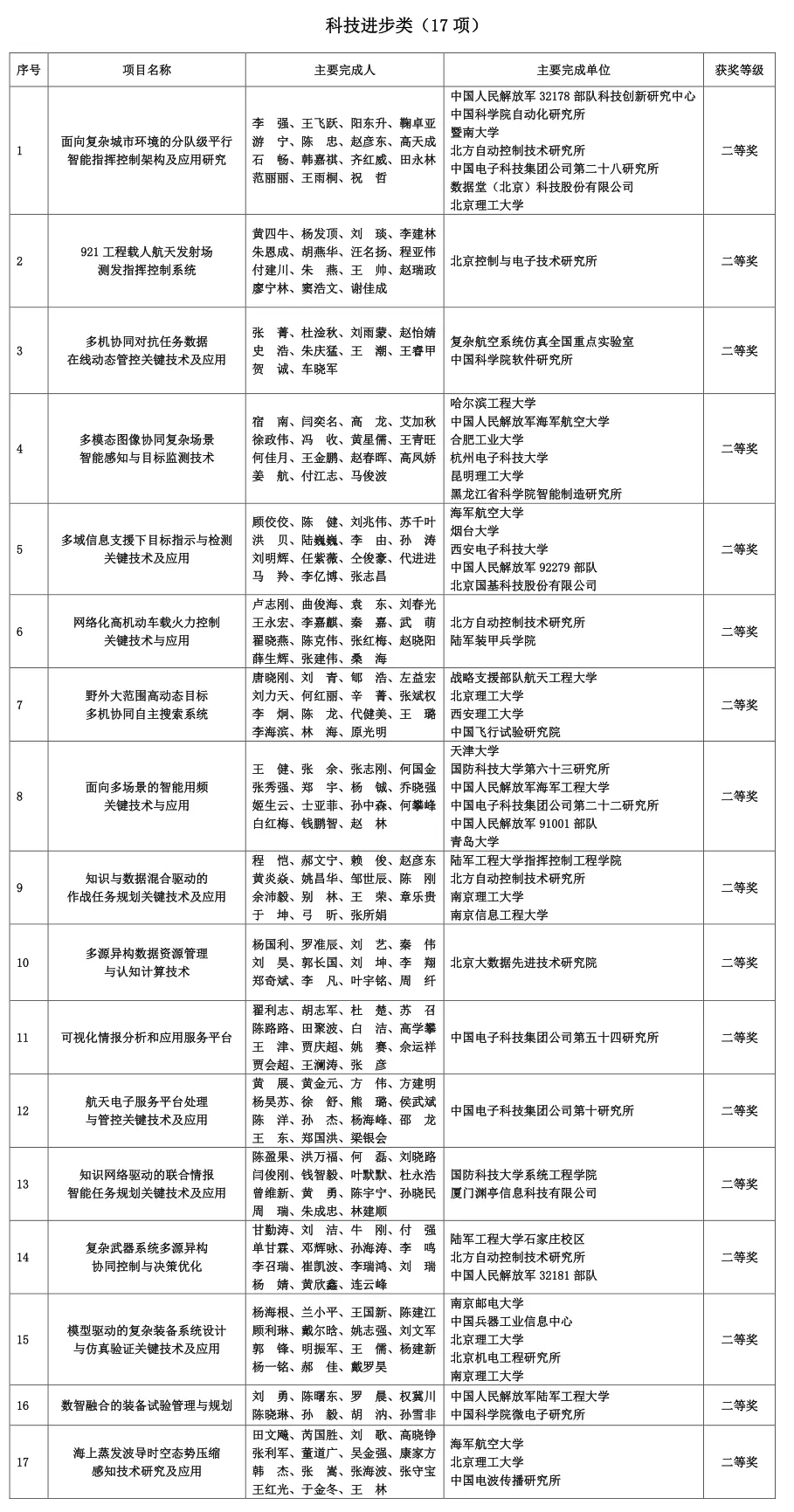 根据《中国指挥与控制学会科学技术奖奖励条例》规定,经各分支机构、会员单位及院士专家的提名、推荐和申报,经中国指挥与控制学会科学技术奖评审委员会评审,对2名科技成就奖、8名青年科技奖、5名创新奖、40个科技进步奖进行授奖,同时对4名会士颁发会士牌匾。中国指挥与控制学会理事长费爱国院士、名誉理事长戴浩院士、副理事长赵爱军研究员、副理事长王积鹏研究员为获奖代表颁奖。